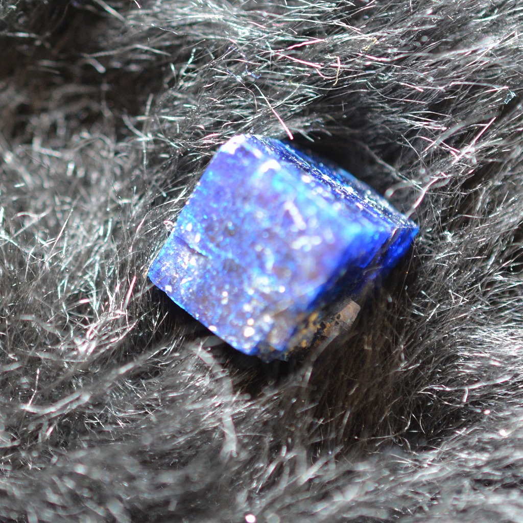 10㎜の母岩の表面半分くらいに青い結晶。宗像石と同質異晶。
